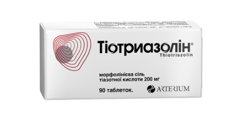 діюча речовина: 1 таблетка містить морфолінієвої солі тіазотної кислоти у перерахуванні на 100 % речовину – 200 мг, що еквівалентно 133 мг тіазотної кислоти;